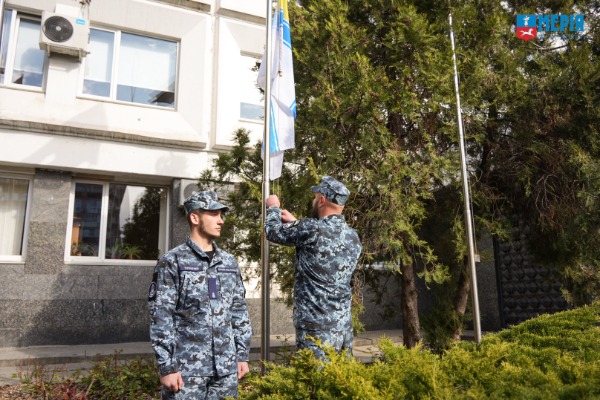Право підняти прапор ВМС України надали старшині 1 статті, командиру групи артилерійських катерів Максиму Колеснику. Під звуки Державного Гімну України стяг урочисто замайорів над містом.