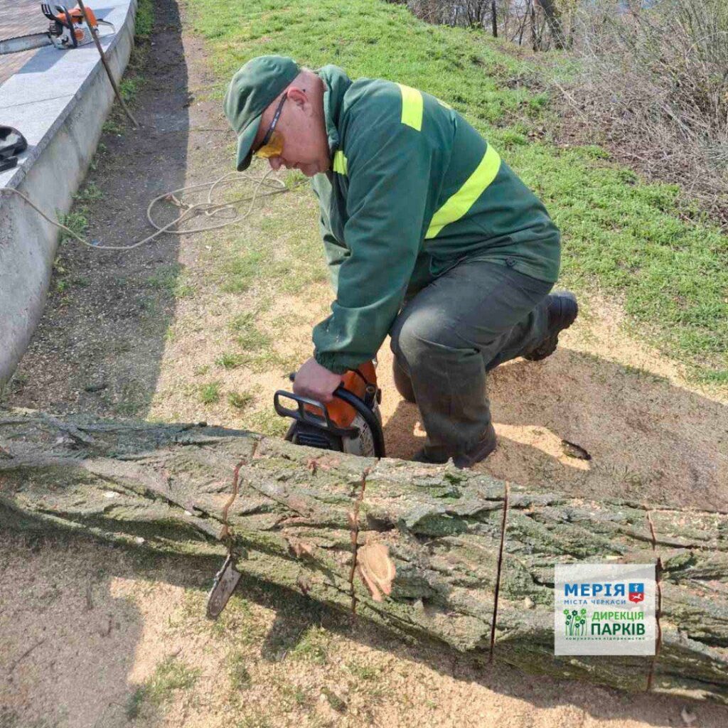 У парку Богдана Хмельницького провели остаточне розрізання та вивезення сухостійних аварійних дерев.