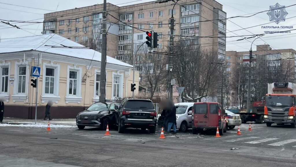 18 січня в Черкасах на перехресті бульварі Шевченка та вулиці Михайла Грушевського сталася ДТП за участі чотирьох автомобілів.