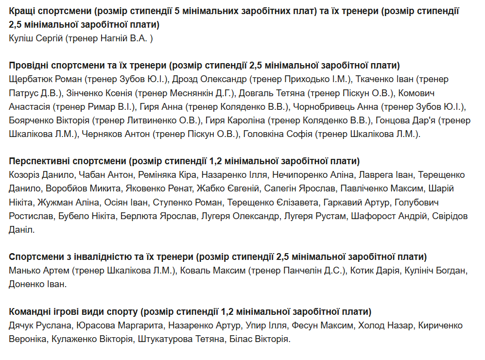 Відтак, у 2026 році стипендії отримуватимуть 54 спортсмени та 11 тренерів.