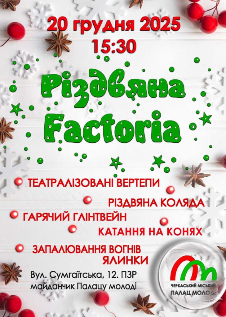 У суботу, 20 грудня, жителів та гостей Черкас запрошують відвідати вуличне свято "Різдвяна Факторія".