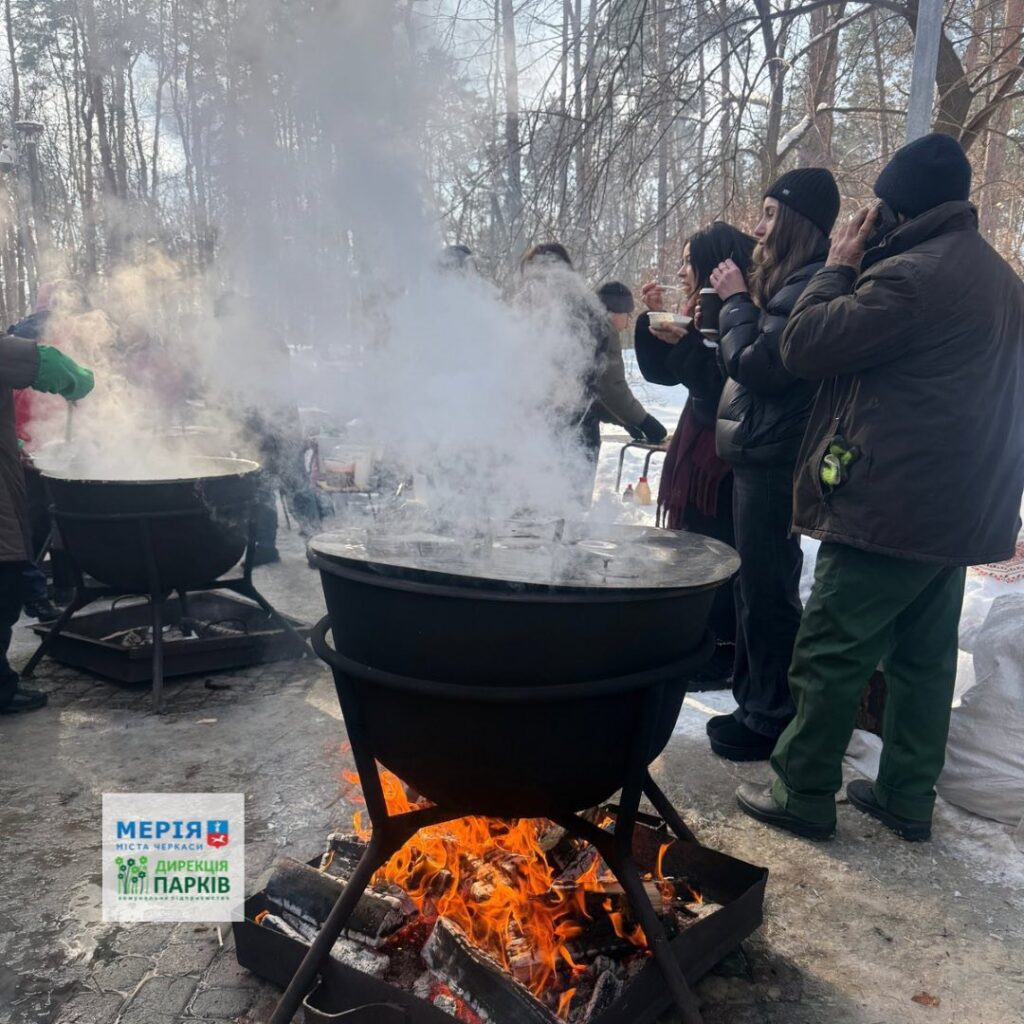 Попри морозну погоду, у парку панувала тепла й святкова атмосфера: концертна програма, дитячі розваги, ярмарок народних майстрів, традиційні частування — каша, млинці та зігріваючі напої.