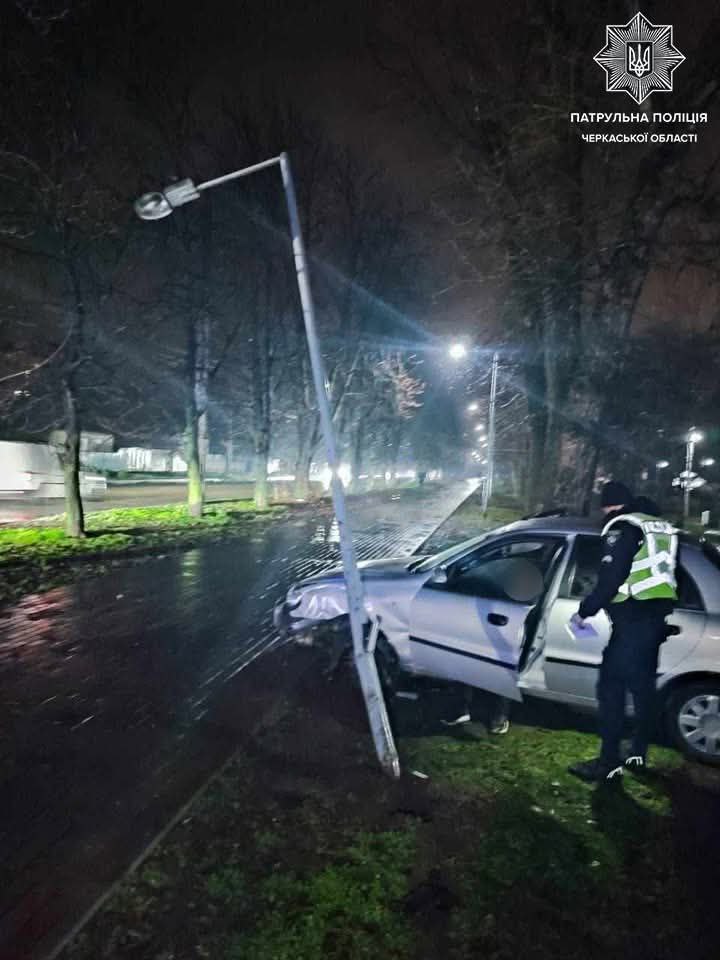 У Черкасах водій в стані наркотичного сп'яніння протаранив електроопору. Автопригода сталася вчора, 11 грудня, близько 21-ї години, на вулиці Михайла Грушевського.