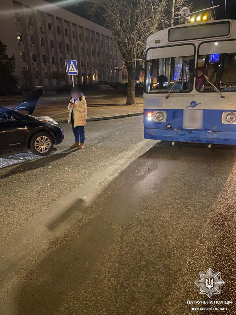 У Черкасах водійка легковика не пропустила тролейбус, зіткнувшись з ним. Автопригода сталась вчора, 24 листопада, на перехресті вулиці Криваліївська та бульвару Шевченка.