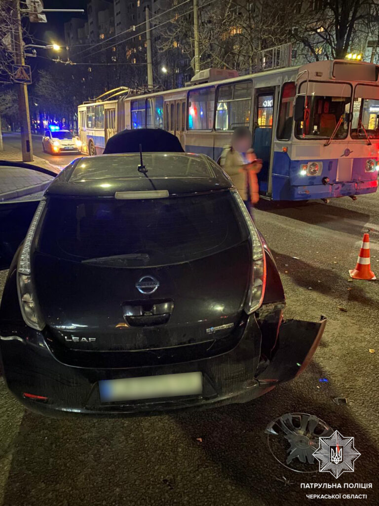 Прибувши на місце події, поліцейські встановили, що водійка авто Nissan Lеaf, рухаючись другорядною дорогою, не надала переваги в русі тролейбусу, що рухався головною дорогою та здійснила з ним зіткнення.