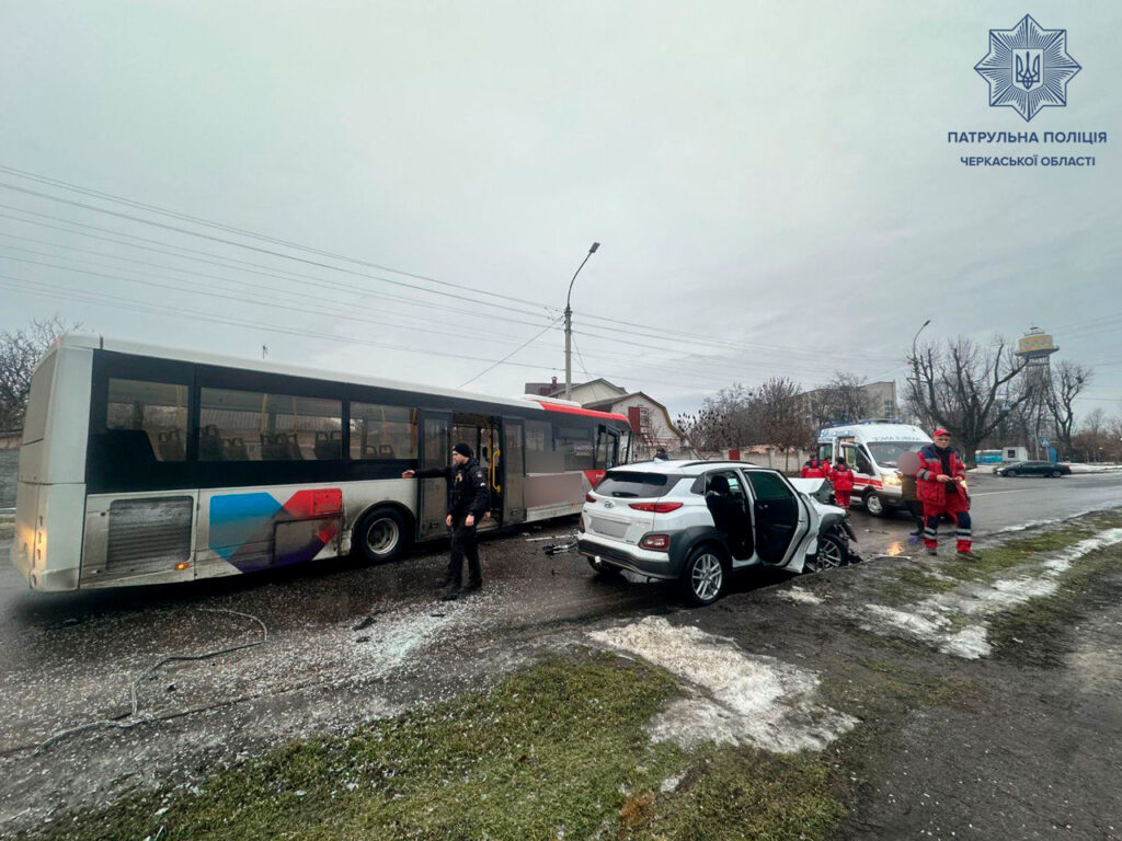 Сьогодні, 15 лютого, на вулиці Максима Залізняка у Черкасах сталася ДТП за участі автомобіля Hyundai Kona та маршрутного транспортного засобу Ambassador 200.
