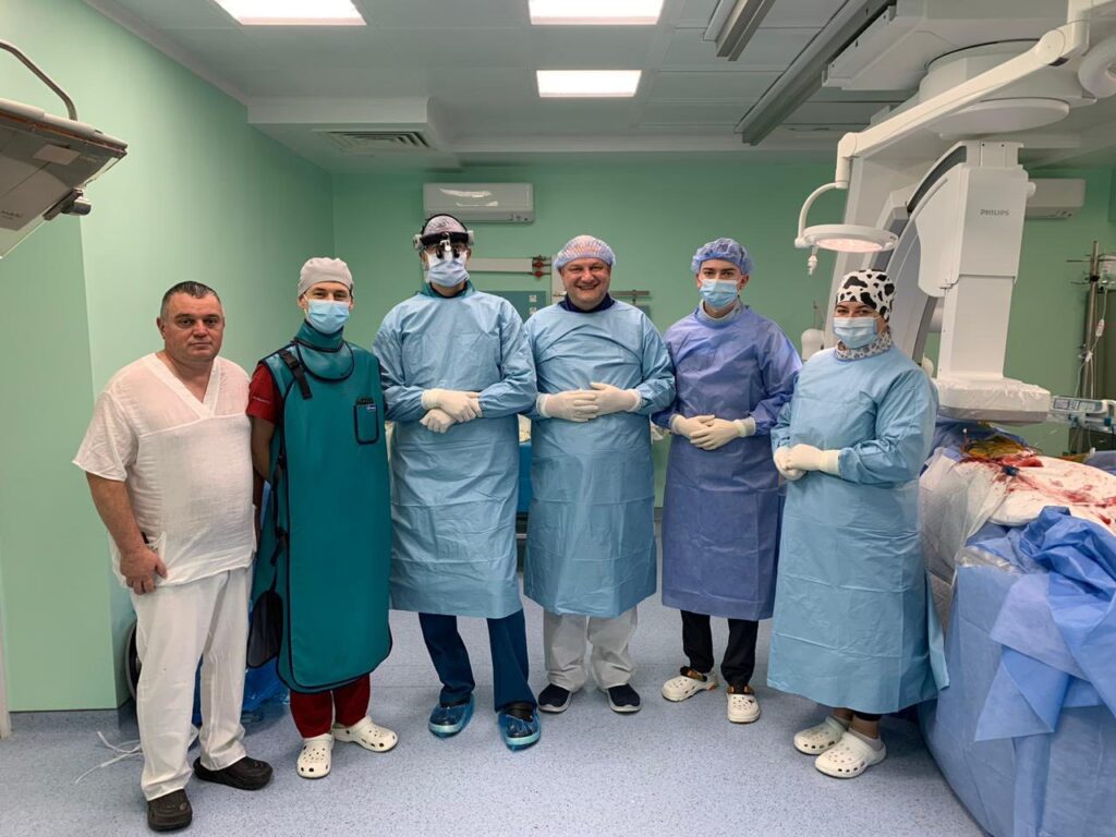 “Така процедура була вперше проведена не лише в нашому закладі, а й загалом в області, – розповідає завідувач відділення серцево-судинної хірургії Олег Журба. – Це особливий протез, який виготовлено спеціально за параметрами пацієнтки. Під час операції ми виконали не лише стентування аорти, а й судини, яка кровопостачає ліву руку.”