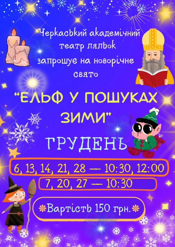 Святкова програма «Ельф у пошуках Зими» стартує в Черкаському академічному театрі ляльок.