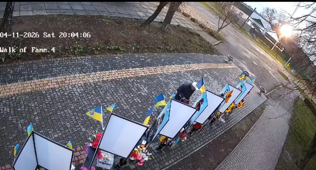 У суботу, 11 квітня, близько 20:00 у Монастирищі було пошкоджено Алею Слави. Невідома на той момент особа зірвала прапори з фотографій загиблих українських військових.