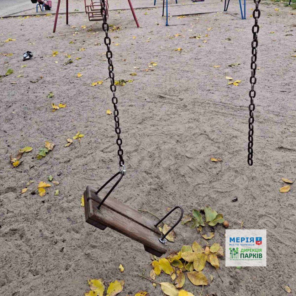 У парку «Казка» працівники підприємства відремонтували гойдалку, яка обірвалася внаслідок перевищення допустимого навантаження.