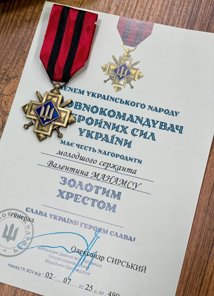 У Золотоноші матері зниклого безвісти захисника Валентина Манамси передали почесну відзнаку Головнокомандувача Збройних сил України «Золотий Хрест».