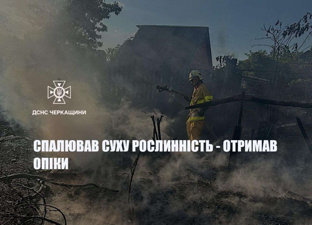 У Звенигородці виникла пожежа сухої рослинності, яка перекинулась на будівлю. Господар, намагаючись загасити пожежу, отримав опіки. Випадок стався у четвер, 14 серпня, близько 17.00.