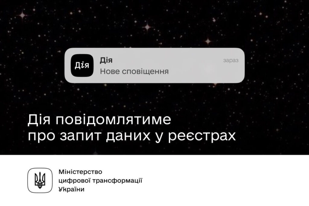 Кожен українець зможе дізнатися коли й для чого його дані переглядають у державних реєстрах. Застосунок «Дія» надсилатиме сповіщення.