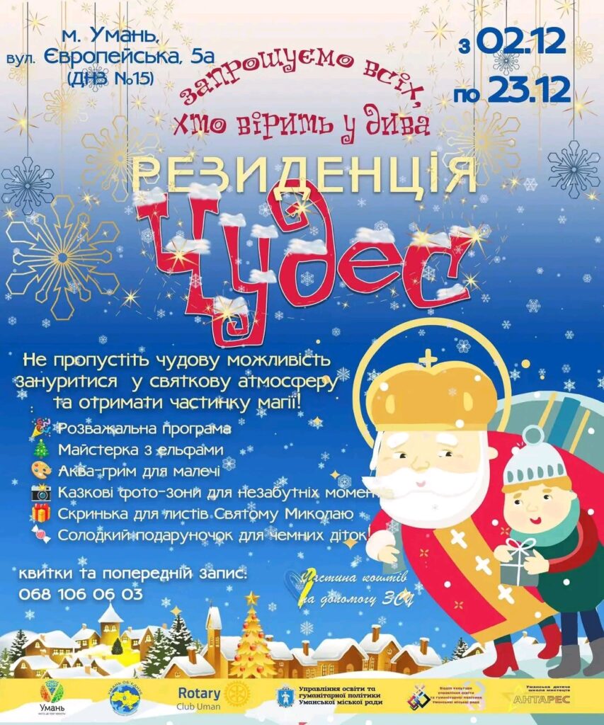 Резиденція працюватиме з 02 по 23 грудня на вул. Європейська, 5а (ДНЗ №15).