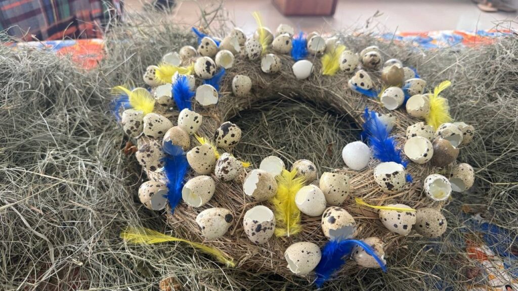 Під час заняття учасники крок за кроком створювали власні великодні композиції з гілок, сухоцвітів, пір’я, шкаралупи яєць та інших природних елементів. Основою оберега слугувало коло, сплетене із сушених запашних трав. Водночас процес мав не лише практичний, а й символічний зміст - про значення кожного елемента розповідала майстриня.