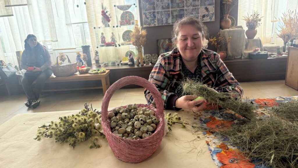 Великодні вінки з трав, сухоцвітів і природних матеріалів створювали учасники майстер-класу в Галереї народного мистецтва України, поєднуючи творчість із давніми традиціями.