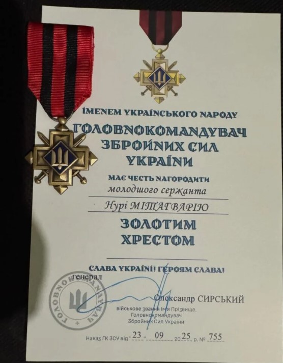 Військовослужбовцю 118 окремої бригади територіальної оборони імені отамана Лютого-Лютенка молодшому сержанту Нурі Мітагварії присвоєно відзнаку Головнокомандувача Збройних сил України «Золотий хрест».