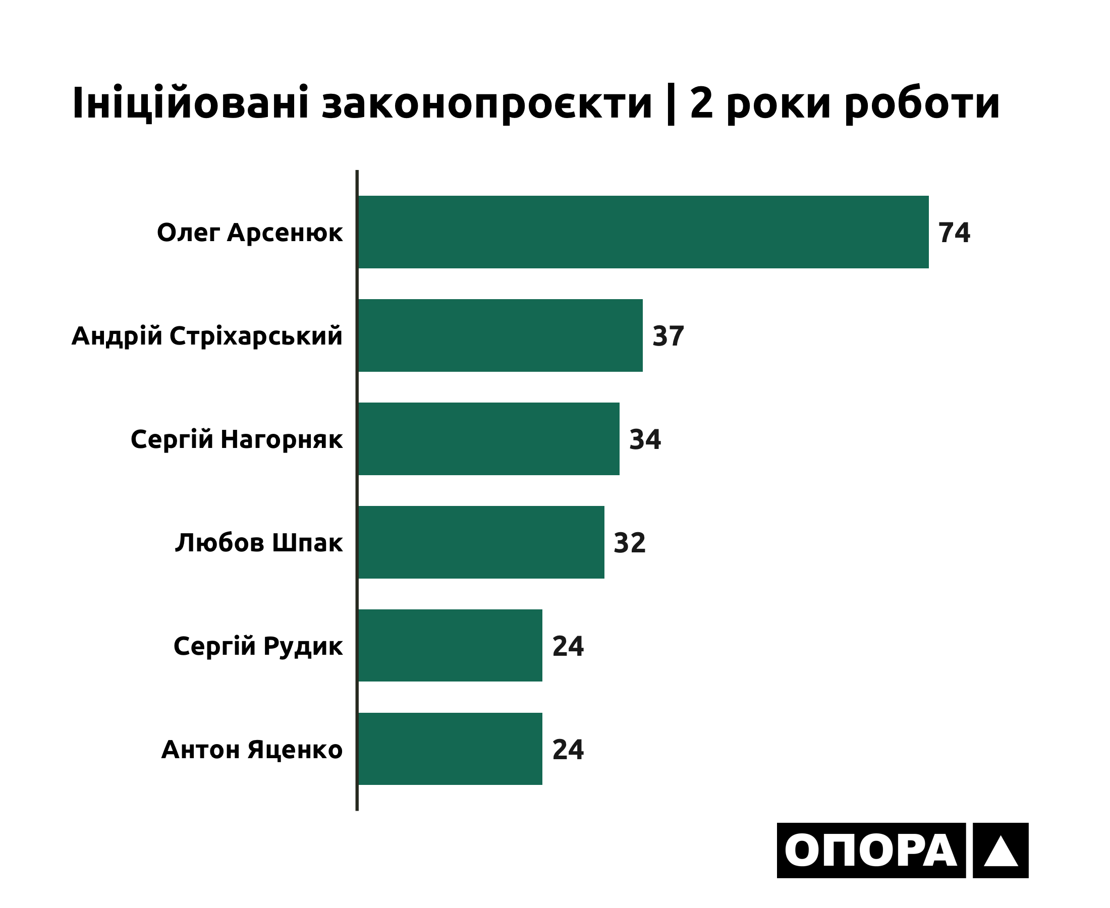 Олег Арсенюк став автором чи співавтором найбільшої кількості законопроєктів, Сергій Рудик найчастіше виступав, а Антон Яценко пропустив найбільше голосувань. Громадянська мережа ОПОРА проаналізувала два роки роботи черкаських мажоритарників у поточному скликанні Верховної Ради.