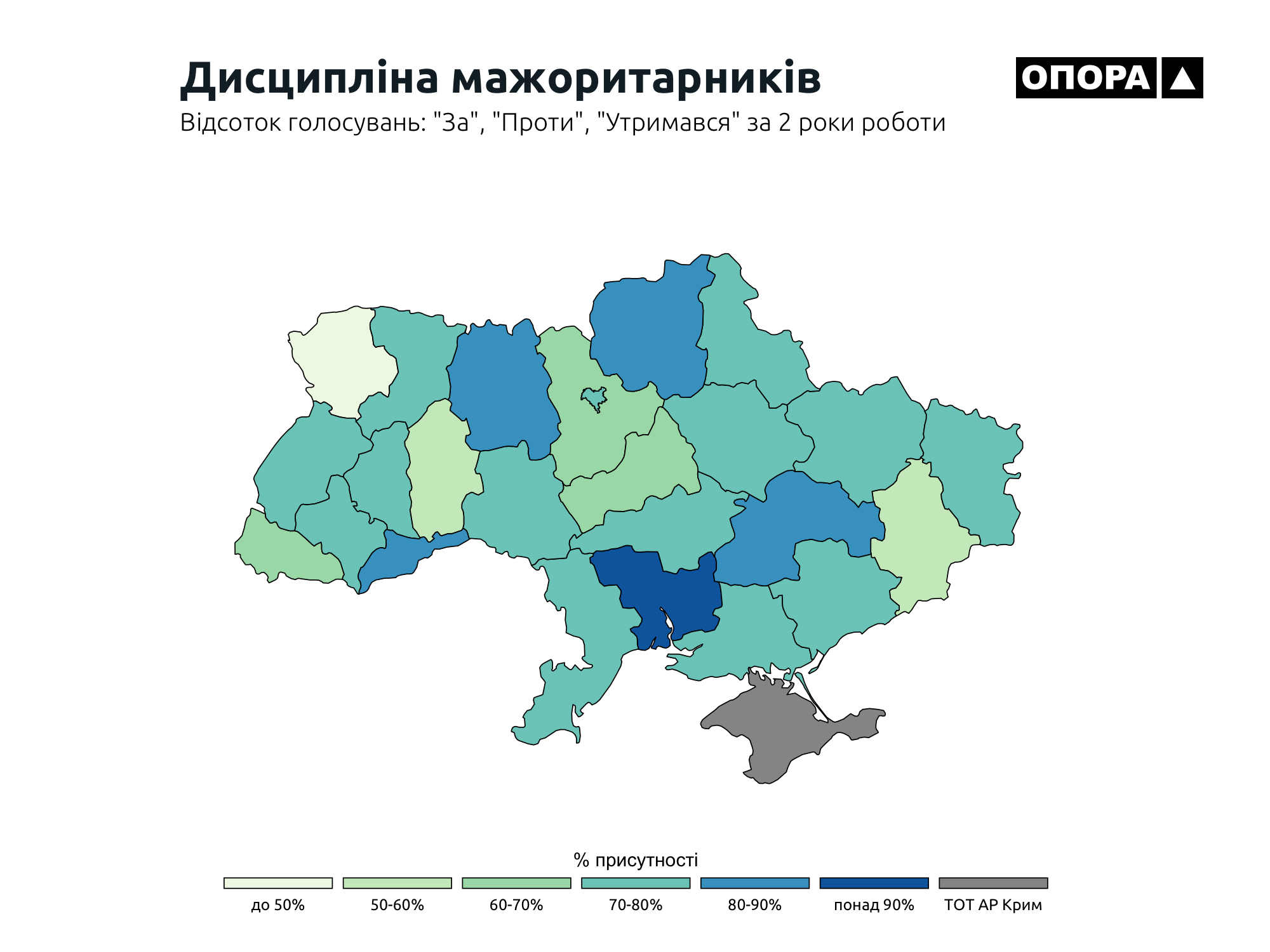 За 2 роки роботи Верховної Ради України IX скликання відбулося 9 582 голосувань. Черкаські мажоритарники загалом найчастіше голосували “за” (34%), утримувались у 26,3% випадків, пропустили 20,5% голосувань, не голосували будучи в залі у 18% випадків і в 1,2% випадків голосували проти.