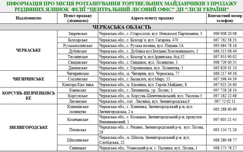 З початку грудня у філії "Центральний лісовий офіс" стартують різдвяні ярмарки. Жителі Черкаської, Вінницької та Кіровоградської областей вже можуть придбати сосну чи ялину на точках продажу різдвяних дерев ДП "Ліси України".