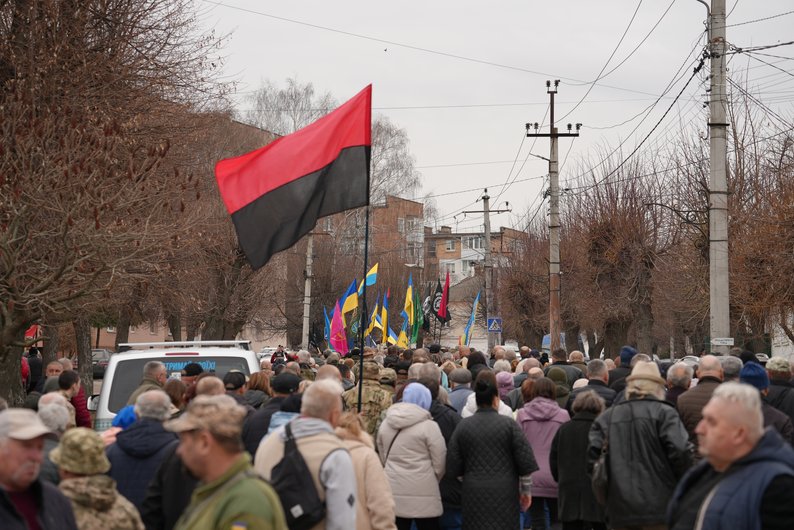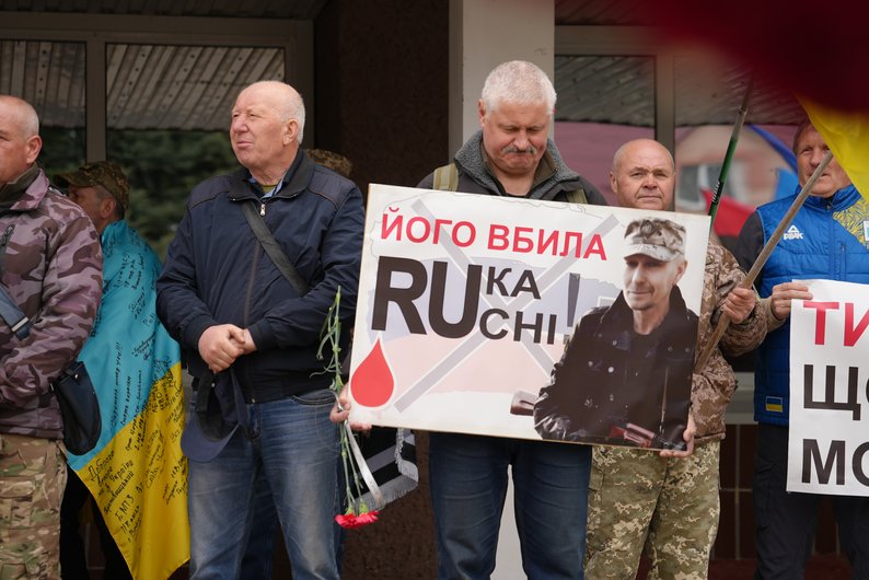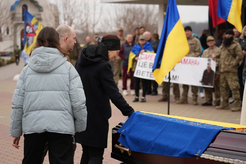 "Шановна громадо, побратими, небайдужі громадяни, сьогодні ми прощаємося не просто з людиною, ми проводжаємо в останню дорогу героя, мужнього захисника України, борця за справедливість і право українського народу жити в вільній, незалежній Україні", — прокоментував син загиблого ветерана Олександр Русінов.