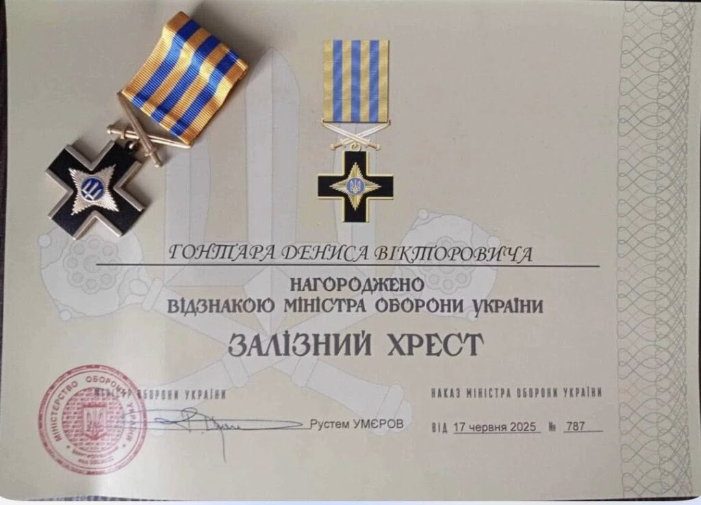 Захисник із Чорнобаївської громади Денис Гонтар удостоєний почесної відзнаки Міністерства оборони України «Залізний хрест».