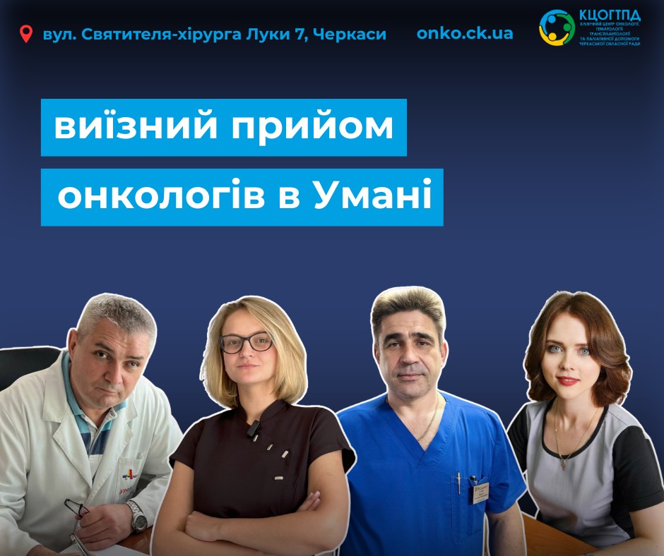 13 листопада в консультативно-діагностичному відділенні Уманської центральної міської лікарні для дорослого населення відбудеться черговий виїзний прийом профільних фахівців Клінічного центру онкології, гематології, трансплантології та паліативної допомоги.